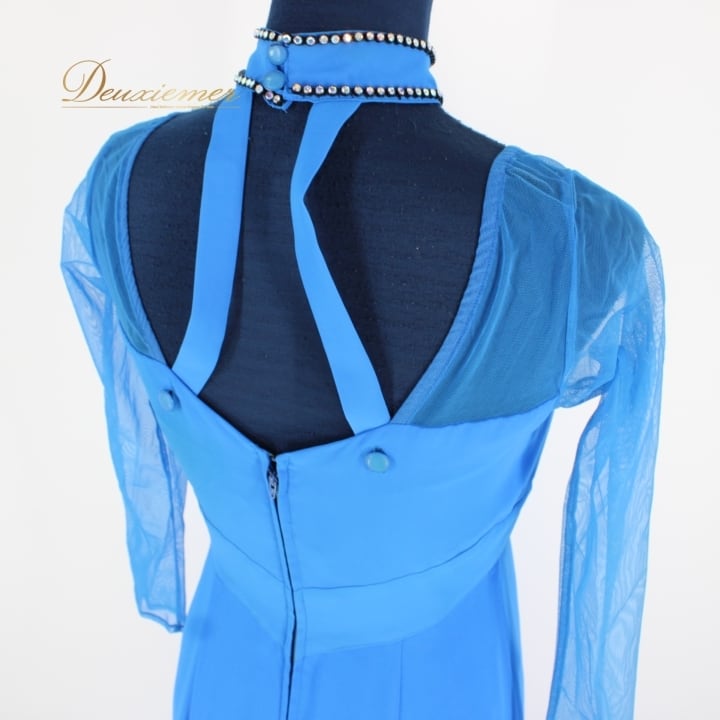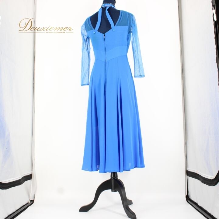 #社交ダンス #ダンスドレス #ドレス #歩きやすい #シンプルデザイン #上品な青色 #日本製 #レース #ファスナー #ウエスト #スリットドレス #女性用トルソー #ポリエステル #サイズM #胸パッド #トレンド #ダンス衣装 #デザイン #おしゃれ #ENUTSU
