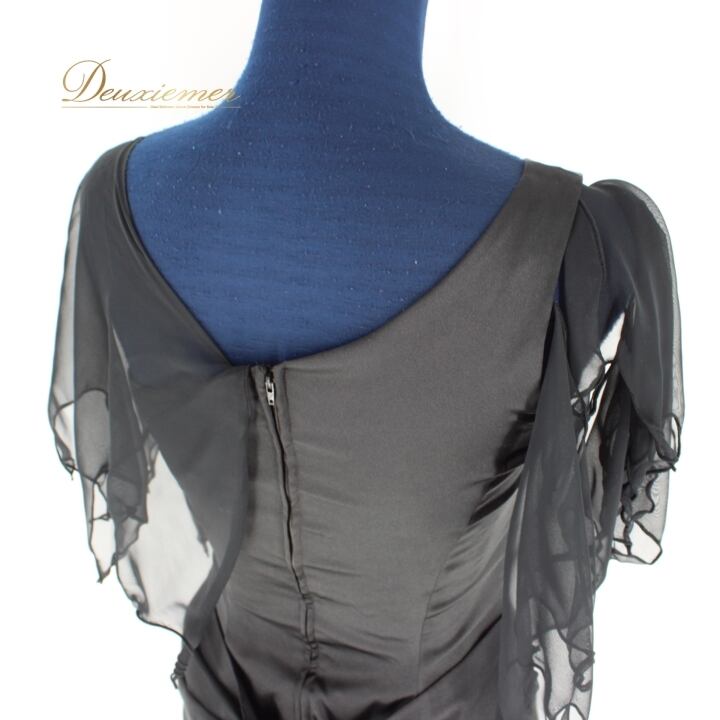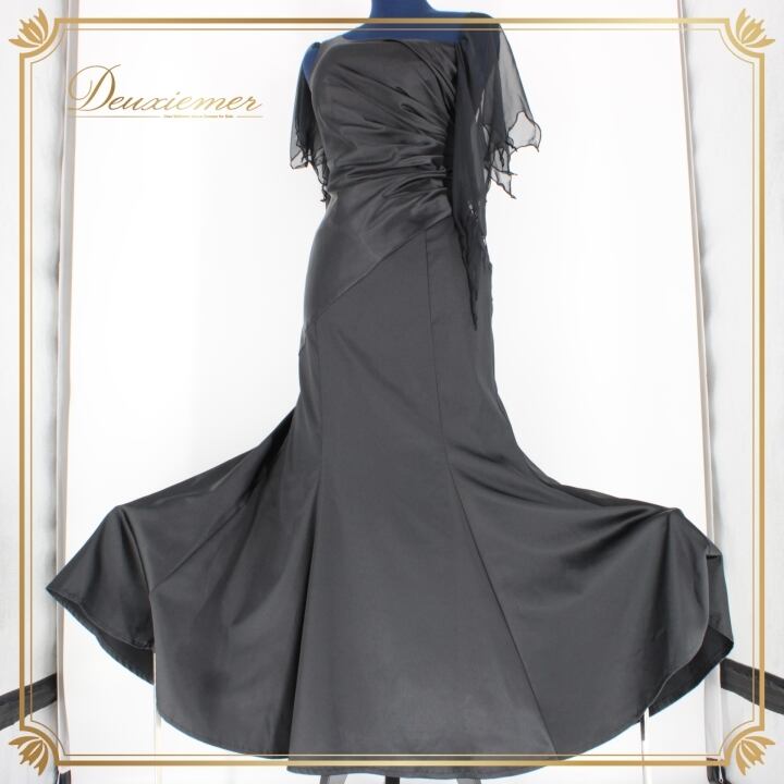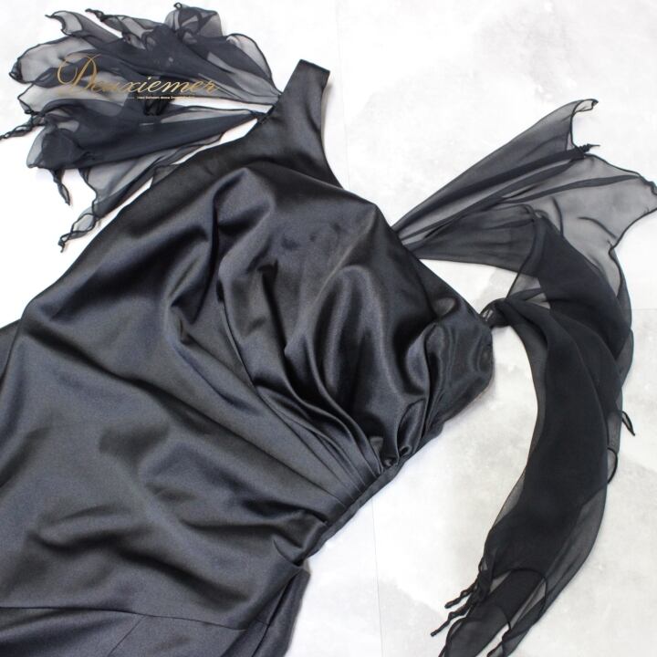 社交ダンス 衣装 スタンダード ドレス ワンピース パーティ衣装 女性用 レディース オールシーズン Scarlet スカーレット 黒 ブラック系 無地 シンプル アシンメトリーデザイン おしゃれ 高品質 モノトーン 結婚式 二次会 発表会 フォーマル 通年用 大人 可愛い スタイリッシュ 着やすい 伸縮性 体型カバー