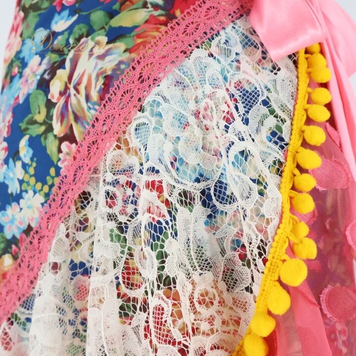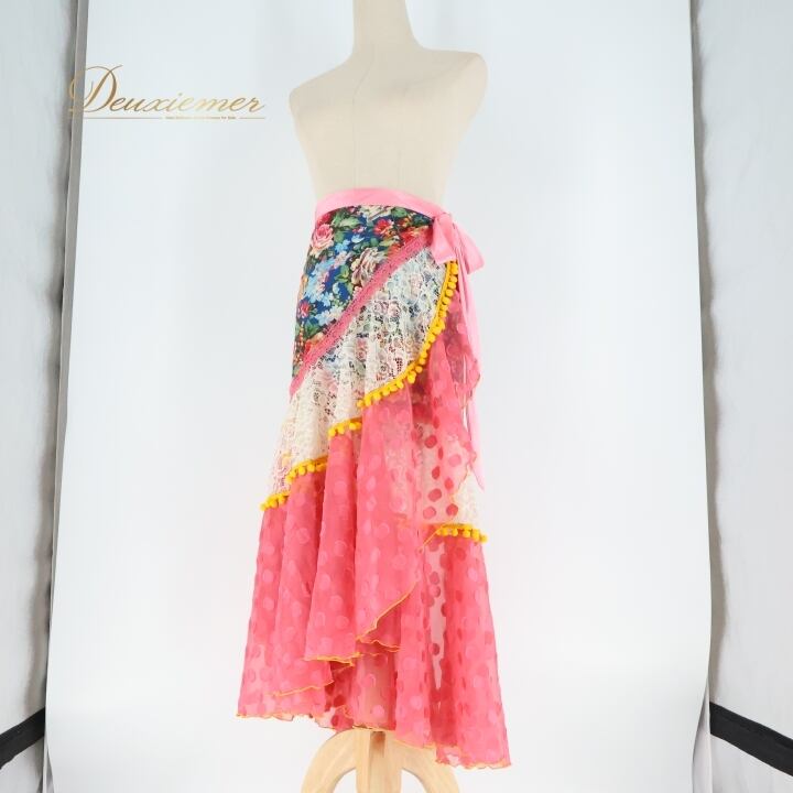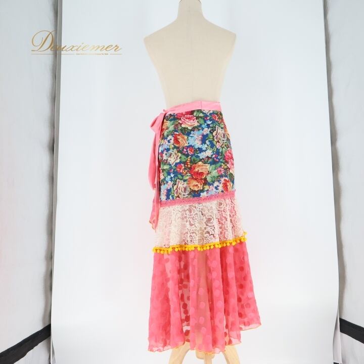 フラメンコ 衣装 スカート 巻きスカート ファルダ 水玉 ドット 花柄 ポンポン フリル レース 軽い 発表会 ピンク系 可愛い ダンス コスチューム イベント用 個性的 おしゃれ フェスティバル パーティ
