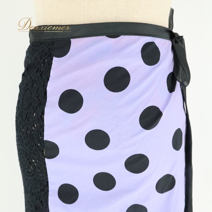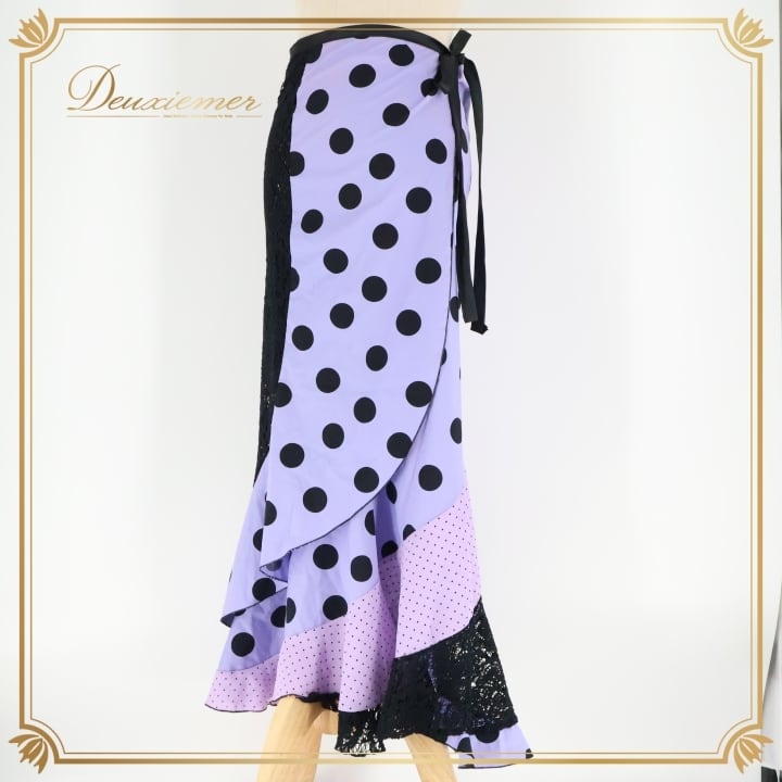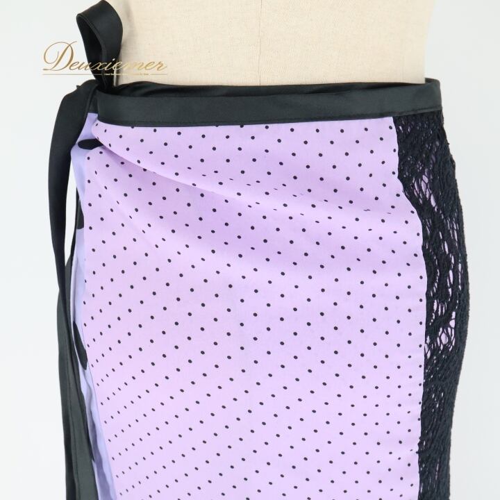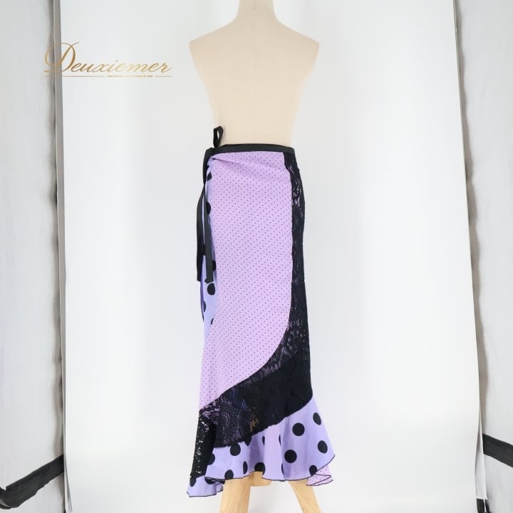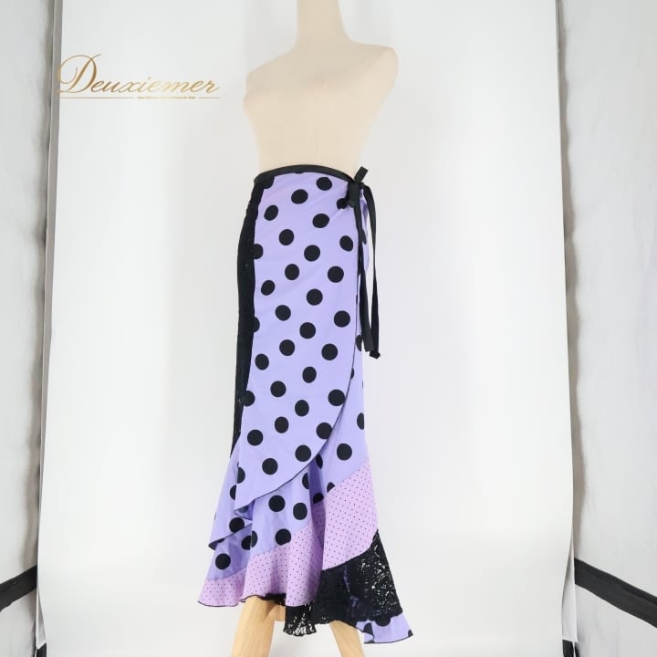 フラメンコ 衣装 巻きスカート スカート 紫 黒 軽い ドット 水玉 レース リボン ブラック系 パープル系 フラメンコ 衣装 おしゃれ かわいい 軽量 スカート レディース 発表会 イベント 軽やか