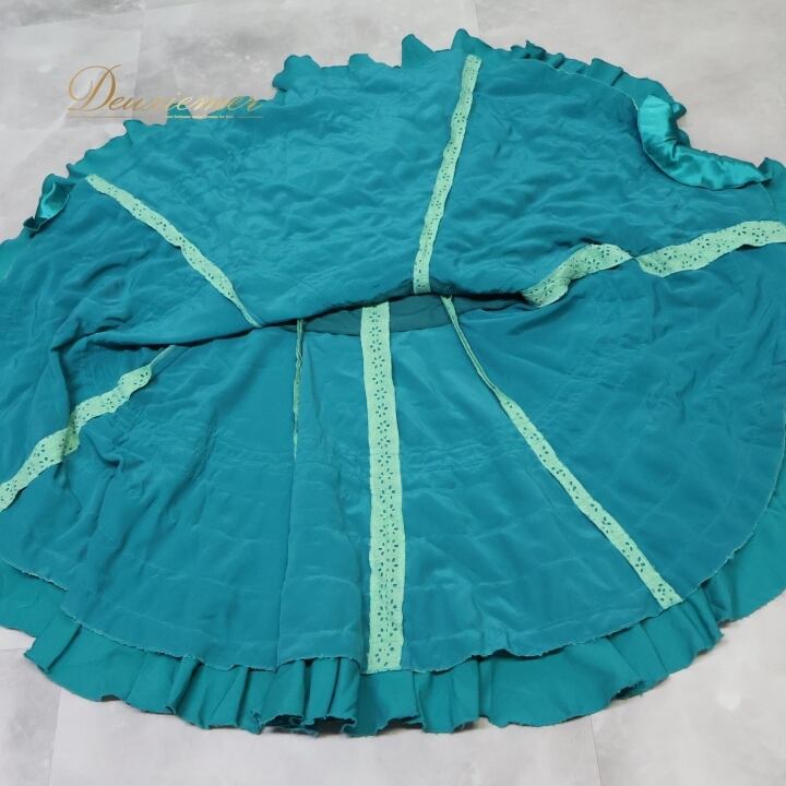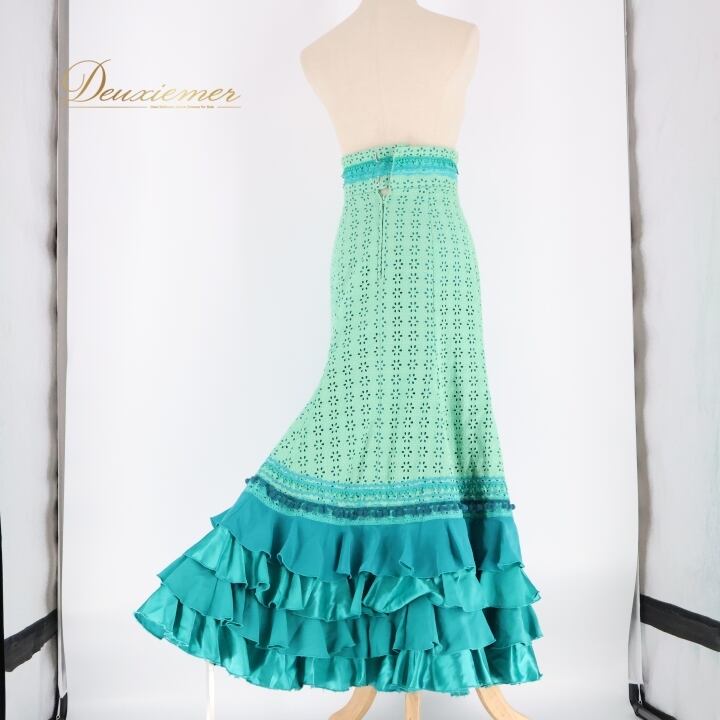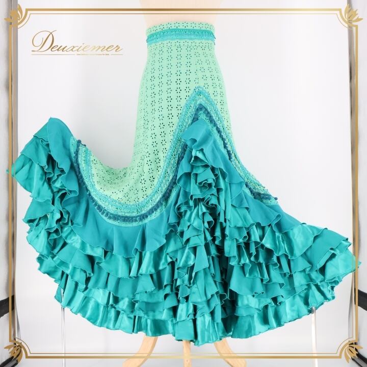 フラメンコ 衣装 ソニアジョーンズ SONIA JOHNES ファルダ スカート 緑 青 フリル ハイウエスト ボランテ フリル レース グリーン系 ブルー系 ダンス パーティ 発表会 フラメンコスカート フリルスカート ボリュームスカート 青緑系 ダンス衣装 ボランテ フリル付き ステージ衣装 発表会衣装 ハイウエストスカート レディーススカート おしゃれ