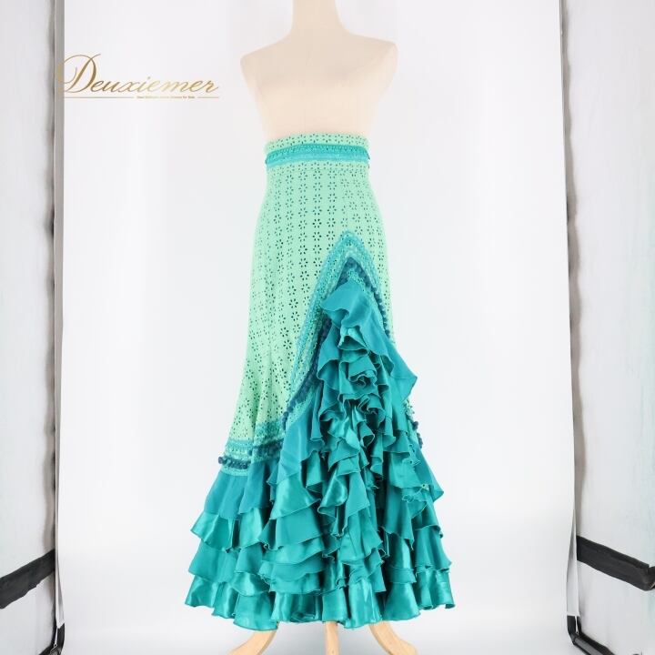 #フラメンコ #衣装 #ファルダ #スカート #ダンスウェア #フリルスカート #SONIAJOHNES #青緑 #ボリューム #舞台衣装 #カスタム衣装 #女性用トルソー #お洒落 #ダンスファッション #フラメンコ衣装 #コスチューム #アート #ウエスト30cm #ヒップ40cm #ENUTSU