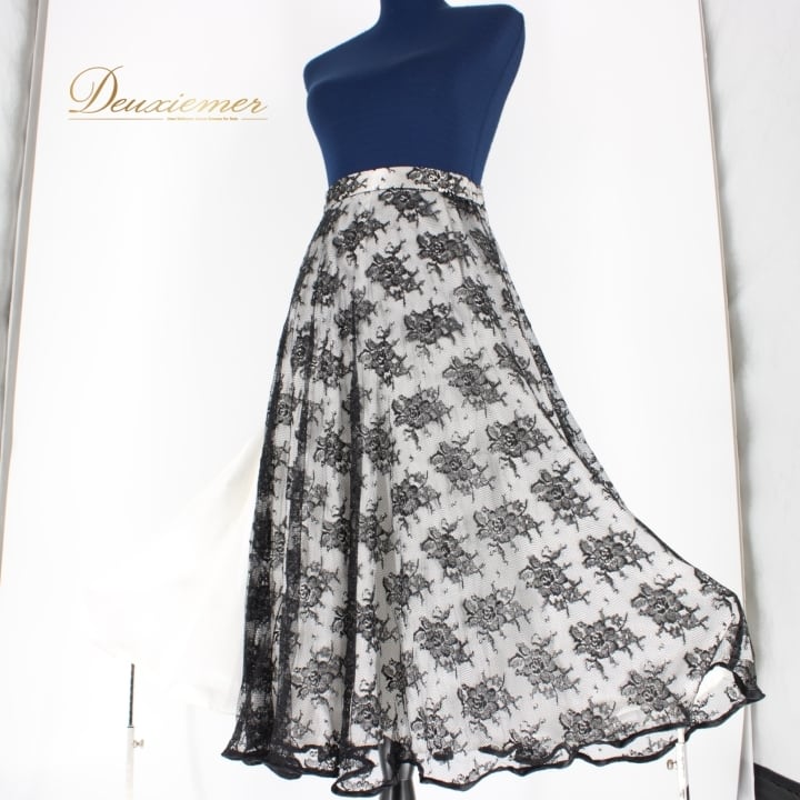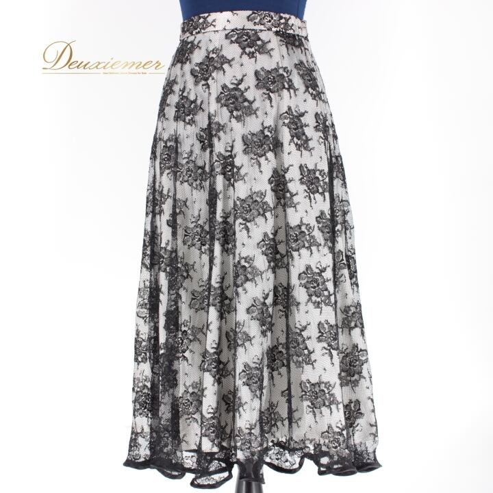 #社交ダンス #ダンススカート #ダンス衣装 #社交ダンス衣装 #スカート #ポリエステル #ファスナー #伸縮性 #ブラックホワイト #花柄レース #日本製 #SEKINE #ダンスファッション #ダンススタイル #カスタマイズ #女性用 #トルソー #美しい #ユニークデザイン #ENUTSU