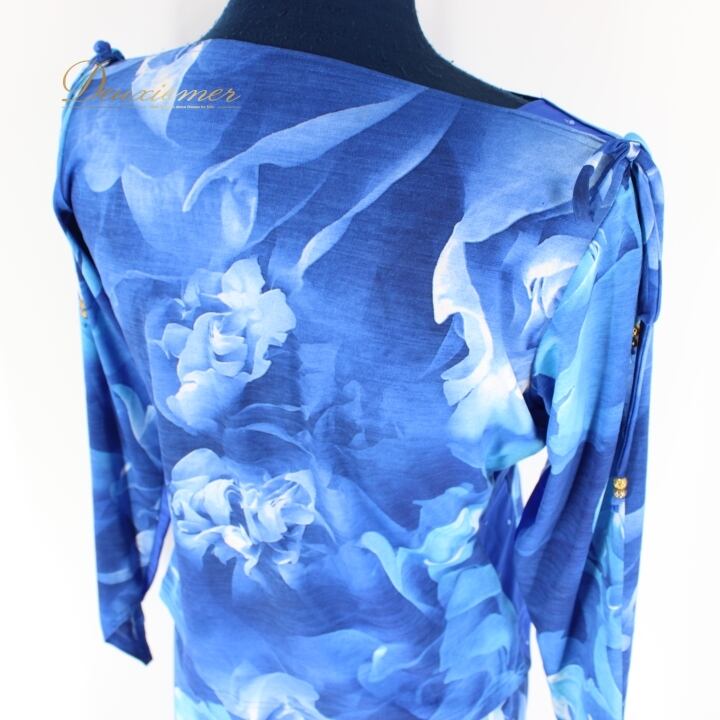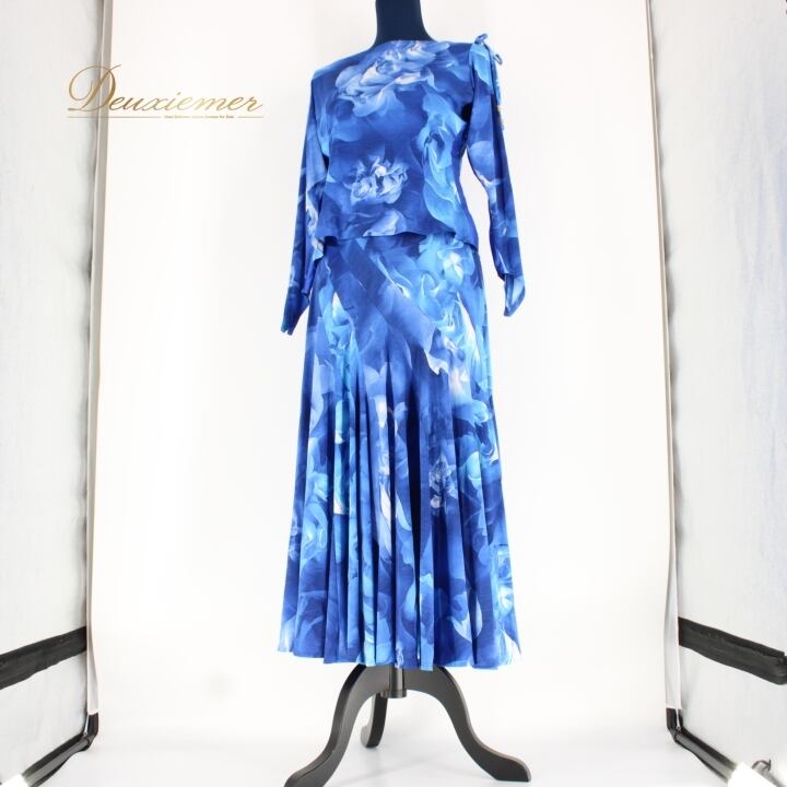 #社交ダンス #ダンス衣装 #セットアップ #日本製 #ブルー #花柄 #ファッション #女性用 #トルソー #ダンススタイル #おしゃれ #ストレッチ #衣装 #パーティー #ダンスリハーサル #シック #スタイリッシュ #ファスナー仕様 #コーディネート #ENUTSU