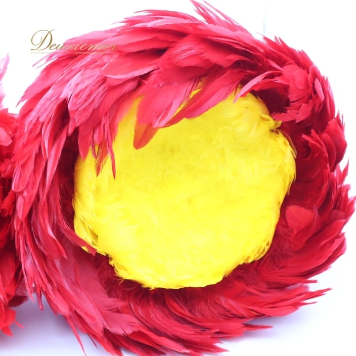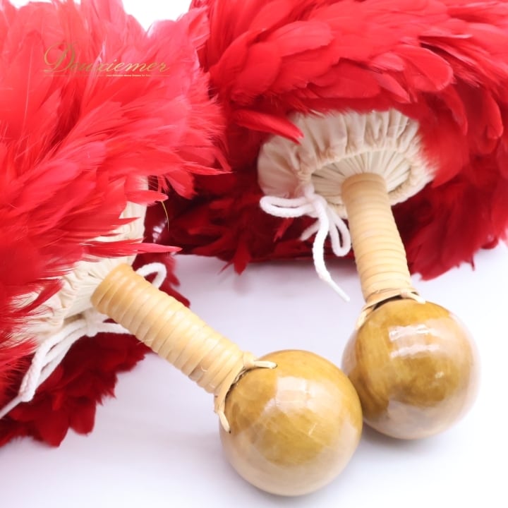 フラダンス ウリウリ マラカス 小物 小道具 楽器 レッド系 赤 イエロー系 黄色 分離型 タヒチアン 民族舞踊 羽 ファー ハワイアン 舞台 フラダンス小物 タヒチアンダンス マラカス楽器 ハワイアン小道具 ハワイ舞踊 赤黄色 羽根