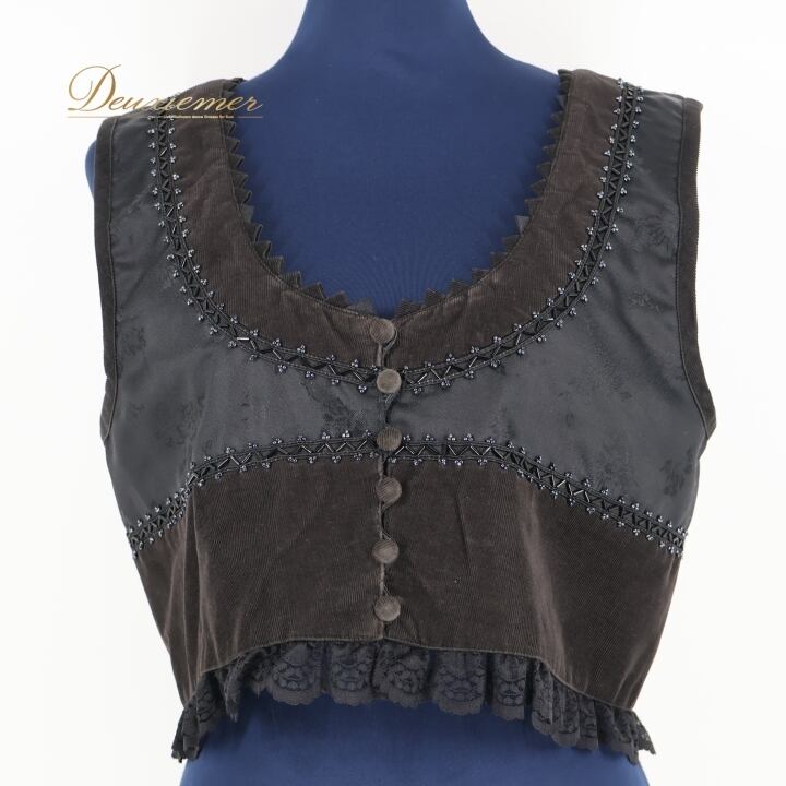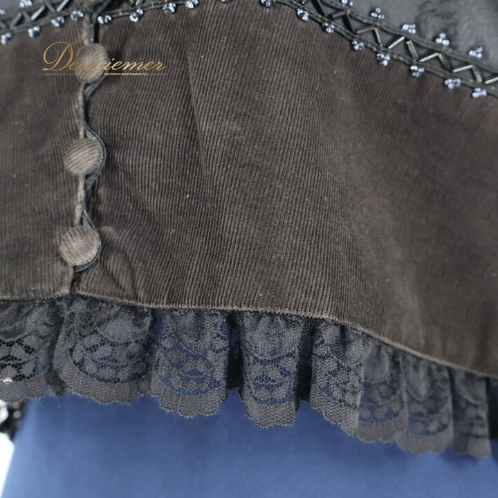 フォークダンス 衣装 ベスト ブラック系 ボタン ビーズ 花柄 黒 チロリアン カントリー 上品 かわいい 華やか レース オールブラック トップス シック 光沢 ダンス衣装