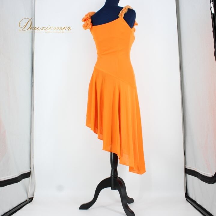#社交ダンス #ドレス #アシンメトリーデザイン #鮮やかオレンジ #ダンス衣装 #ファッション #ポリエステル #ダンスファッション #女性用トルソー #ステージ衣装 #パフォーマンス #ダンスパートナー #競技ダンス #ダンススタイル #ダンスライフ #コスチューム #バルカーダンス #イベント衣装 #Sundress #ENUTSU