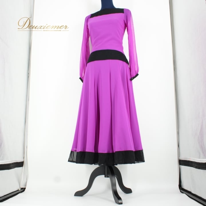 社交ダンス 衣装 スタンダード 上下セット ツーピース パーティ衣装 女性用 レディース オールシーズン 黒 紫 サン・ヨシムラ ブラック系 パープル系 Mサイズ おしゃれ フレアスカート 薄手 ダンスイベント 講習会 おすすめ 吸汗速乾 伸縮性 通気性 丈夫 黒レース 上品 カジュアル フェミニン 特別な日 使用可
