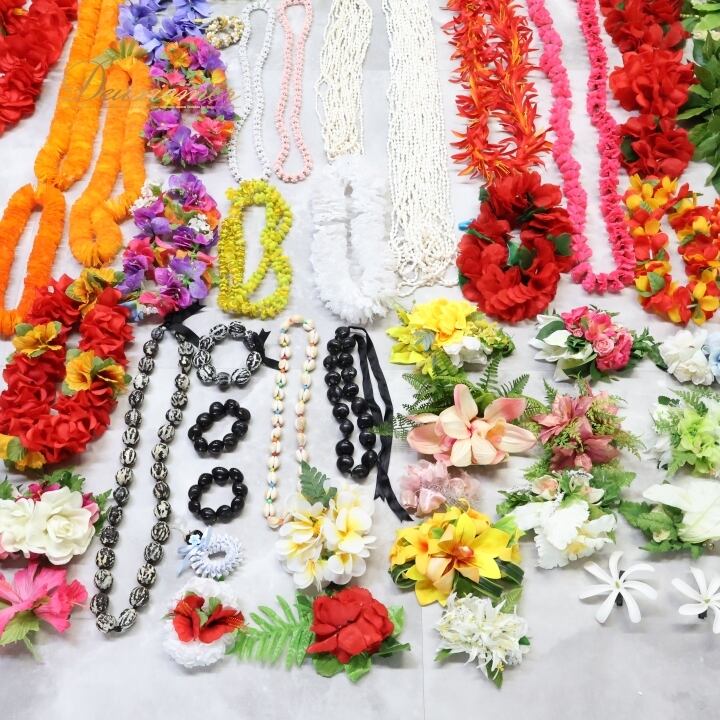 ▽ネックレス フラワーレイ リーフレイ シェルレイ 髪飾り 頭飾り バッグ ポーチ