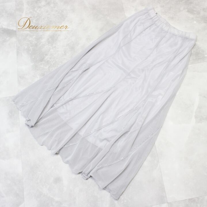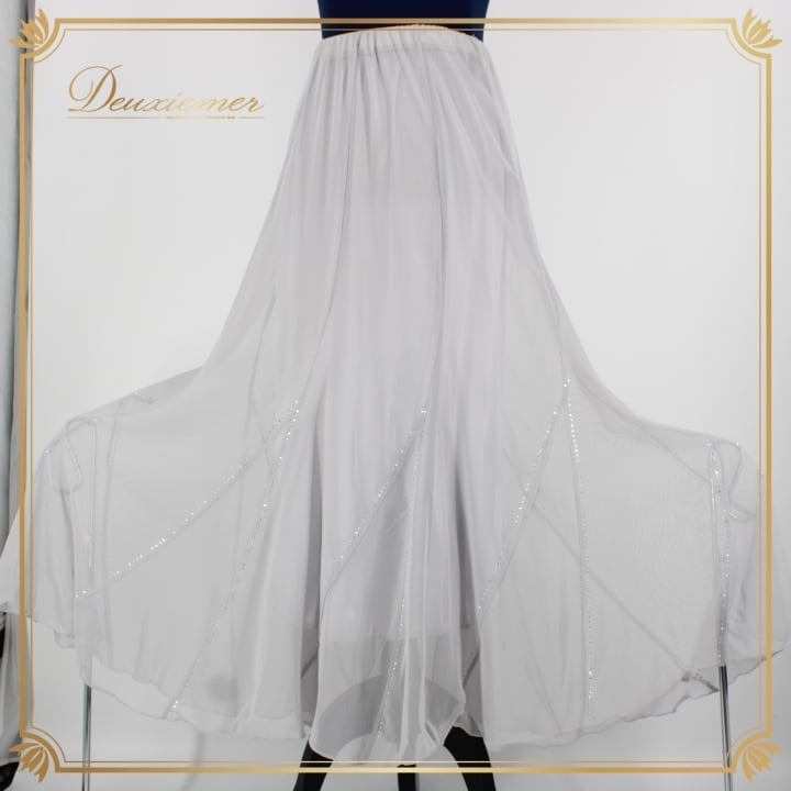 #社交ダンス #ダンス衣装 #スカート #ライトグレー #ラインストーン #上品 #シンプルデザイン #ウエストゴム #伸縮性 #ポリエステル #ポリウレタン #ダンスファッション #コスチューム #女性用トルソー #ダンススタイル #おしゃれ #ライフスタイル #特別な日 #イベント衣装 #ENUTSU