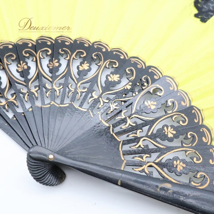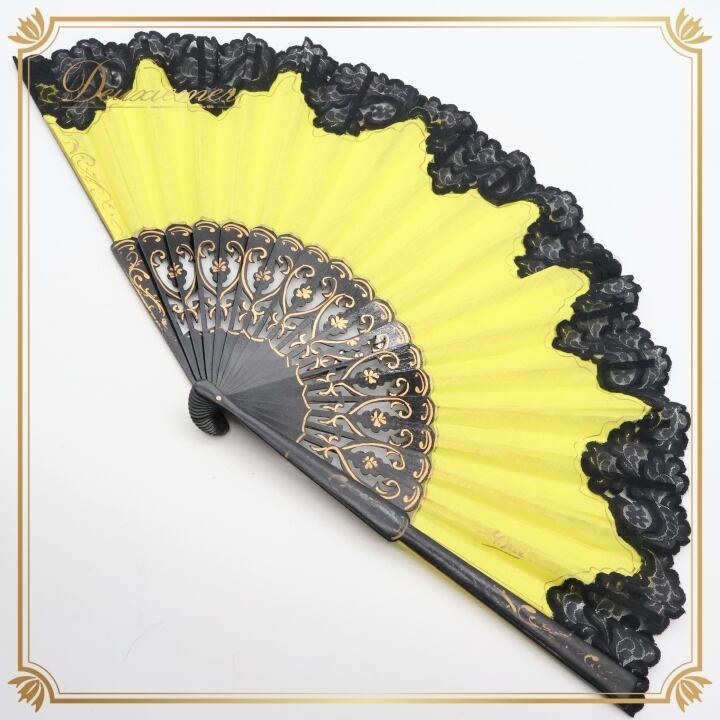 フラメンコ アバニコ 扇子 小物 小道具 32cm イエロー系 黄色 ブラック系 黒 ゴールド レース 柄 模様 アイテム 練習 舞台 発表会 イベント アクセサリー イエロー 黒い レース 扇 ダンス パフォーマンス 美しい かわいい おしゃれ