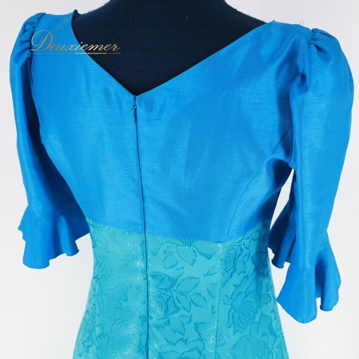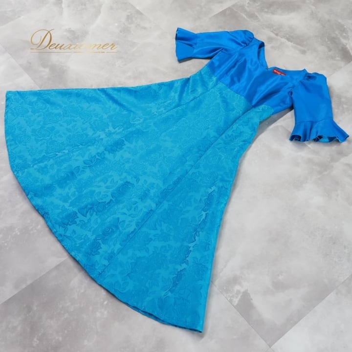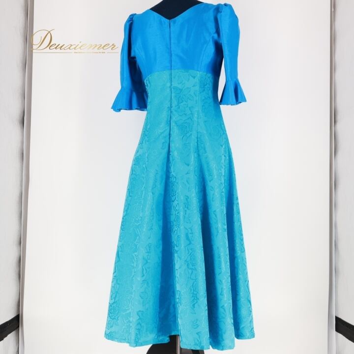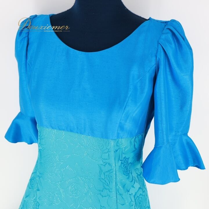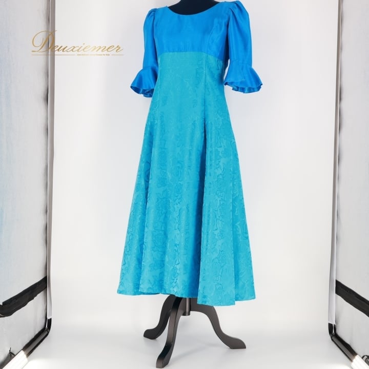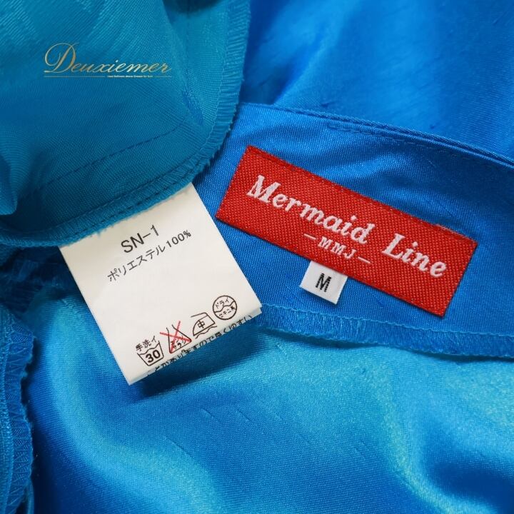 #フラダンス #衣装 #ドレス #ワンピース #マーメイドライン #日本製 #ブルー #光沢 #上品 #フリル袖 #ファスナー #ポリエステル #伸縮性無し #女性用トルソー #フラダンス衣装 #夏祭り #ダンス衣装 #コスチューム #おしゃれ #ENUTSU