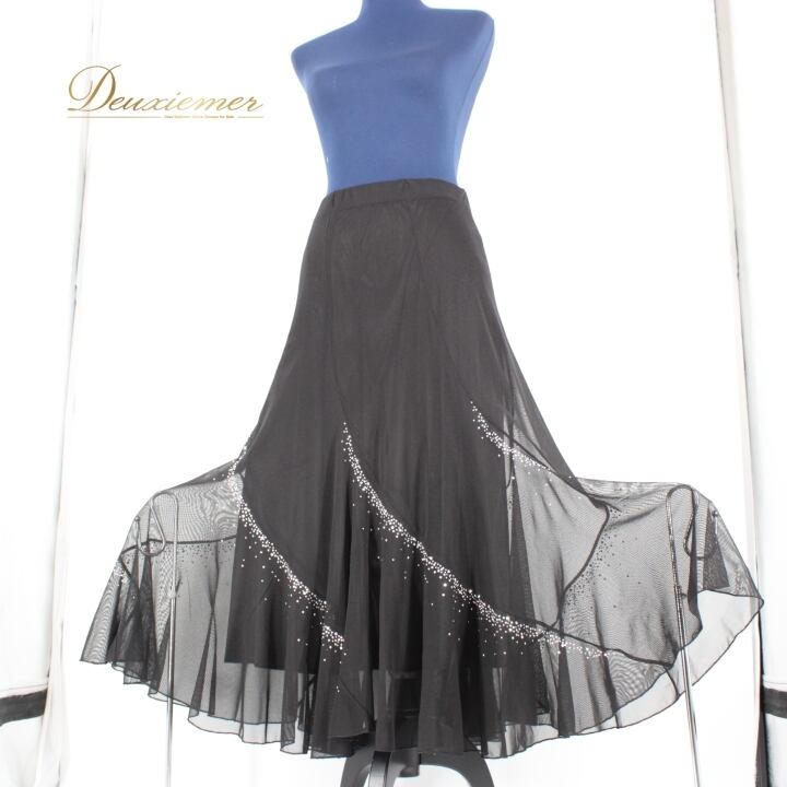 #社交ダンス #ダンス衣装 #モノトーン #レイリーナ #スカート #ラインストーン #ウエストゴム #ポリエステル #スカートコーデ #ダンスファッション #女性用トルソー #トルソー #プレゼント #特別な日 #衣装 #おしゃれ #ダンススタイル #スタイリッシュ #フィット感 #ENUTSU