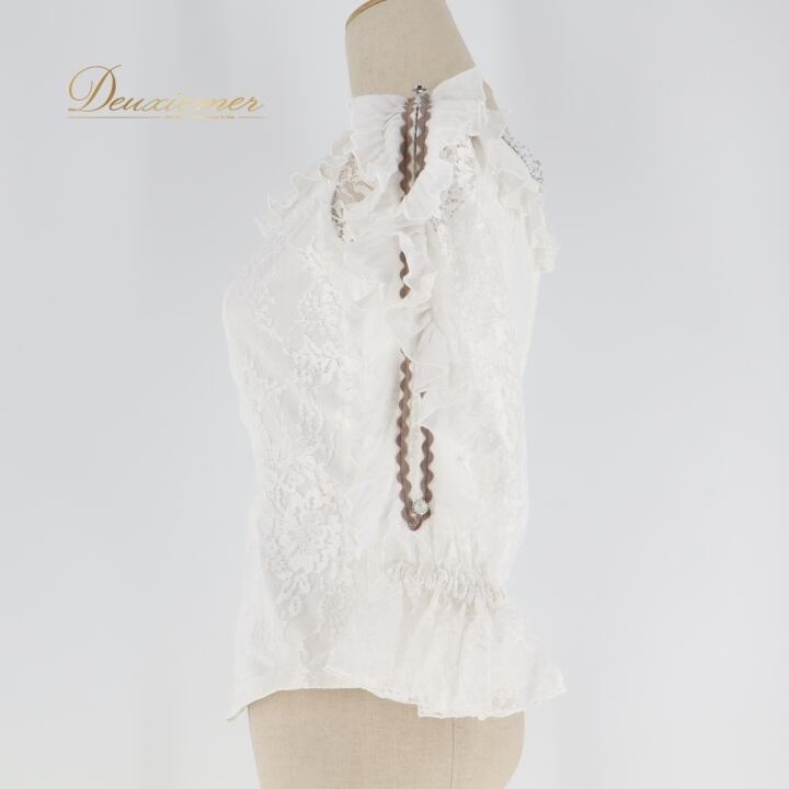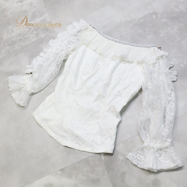 フラメンコ 衣装 ソニアジョーンズ SONIA JOHNES ブラウス トップス レース フリル 白 ダンス パーティ 発表会 ホワイト系 フェミニン カジュアル エレガント おしゃれ レディース トップス コスチューム 白 フリルブラウス レースブラウス ドレスアップ パーティー用 発表会用