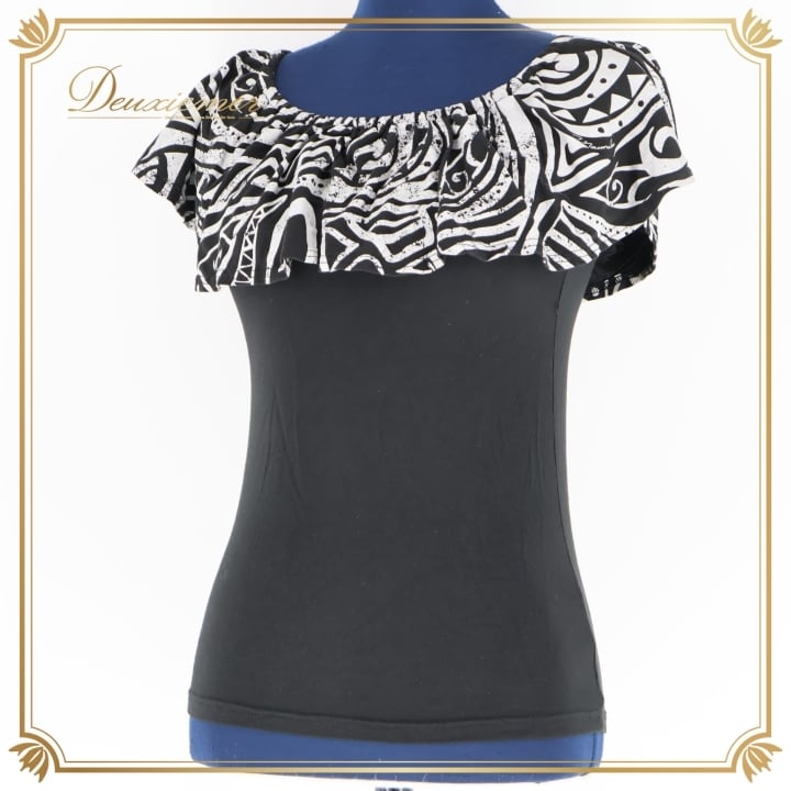 フラダンス 衣装 トップス ブラック系 マウナロア ハワイアン アロハ モノトーン おしゃれ 上品 大人っぽい 大人 フリル オフショル ワンショル 3way ダンス Maunaloa 黒 ホワイト系 白 ブラウス フラダンス衣装 トップス お洒落 大人