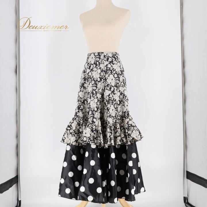 フラメンコ 衣装 ファルダ スカート 柄 ドット 水玉 アトリエベリッシマ atelier Bellissima ブラック系 ホワイト系 軽い 白 黒 モノトーン ダンス パーティ 発表会 スカート フェミニン おしゃれ 大人可愛い フラメンコ衣装 ふんわり クラシック ステージ衣装 アクセサリー
