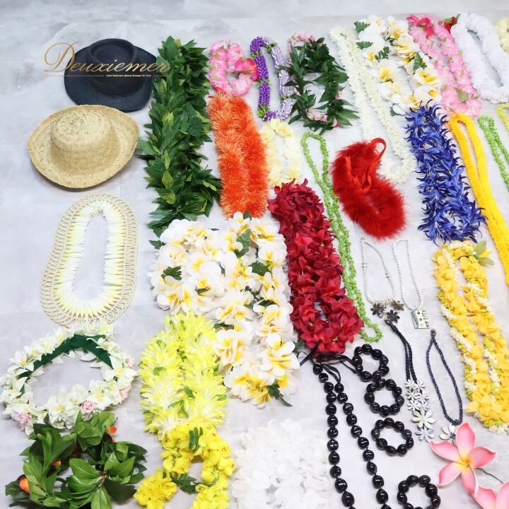 #フラダンス #タヒチアンダンス #ダンス小物 #まとめ売り #ネックレス #フラワーレイ #リーフレイ #髪飾り #頭飾り #民族舞踊 #ダンス衣装 #フラダンス小物 #ヘアアクセサリー #アロハ #ハワイアン #パーティー #祭り #文化 #ダンスイベント #ENUTSU