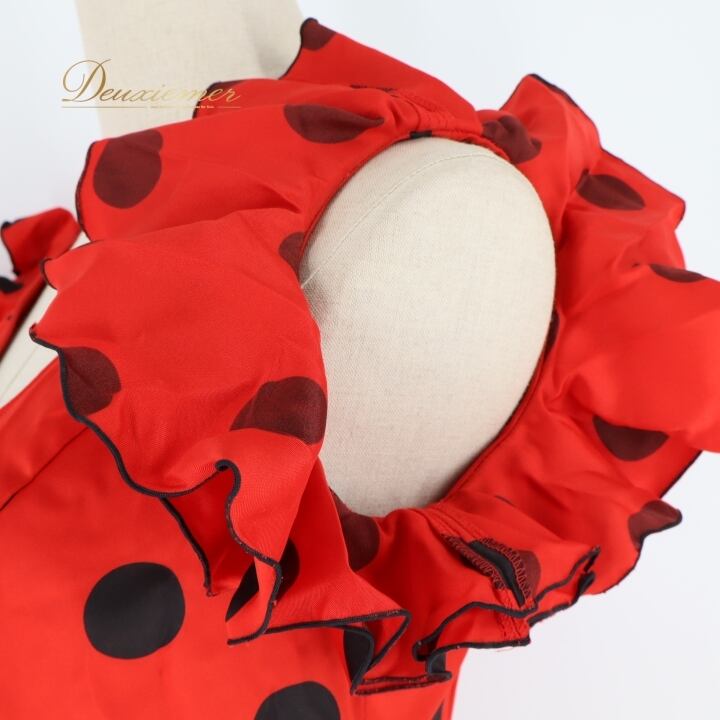 フラメンコ 衣装 ワンピース ドレス 赤 黒 ボランテ フリル ドット 水玉 ブラック系 レッド系 Naomi Collection ナオミコレクション エレガント 派手 可愛い おしゃれ 大人 女性 フレア デザイン パーティー イベント 衣装 ドレッシー フェミニン ステージ