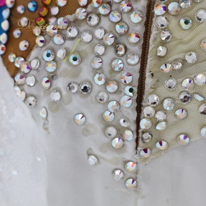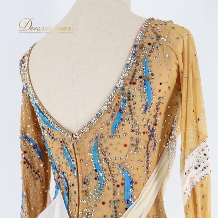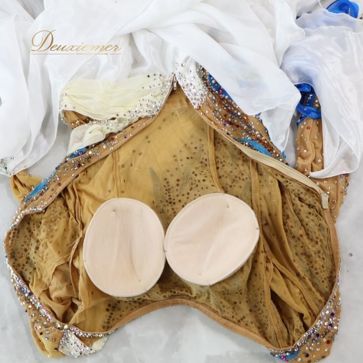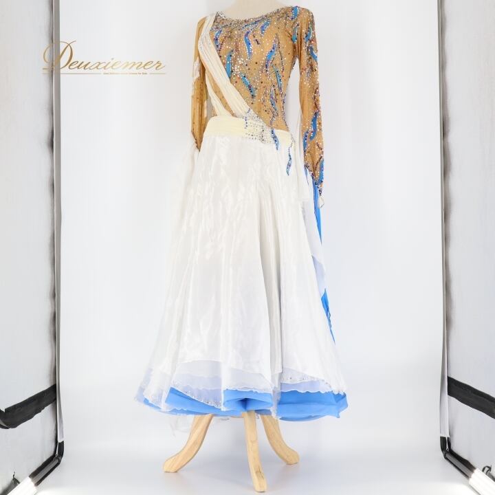 社交ダンス 衣装 スタンダード ドレス ワンピース スタンダードドレス 白 青 フロート デモ 競技 ダンス パーティ 発表会 綺麗 ホワイト系 ブルー系 上品 ダンスステージ 競技用 発表用