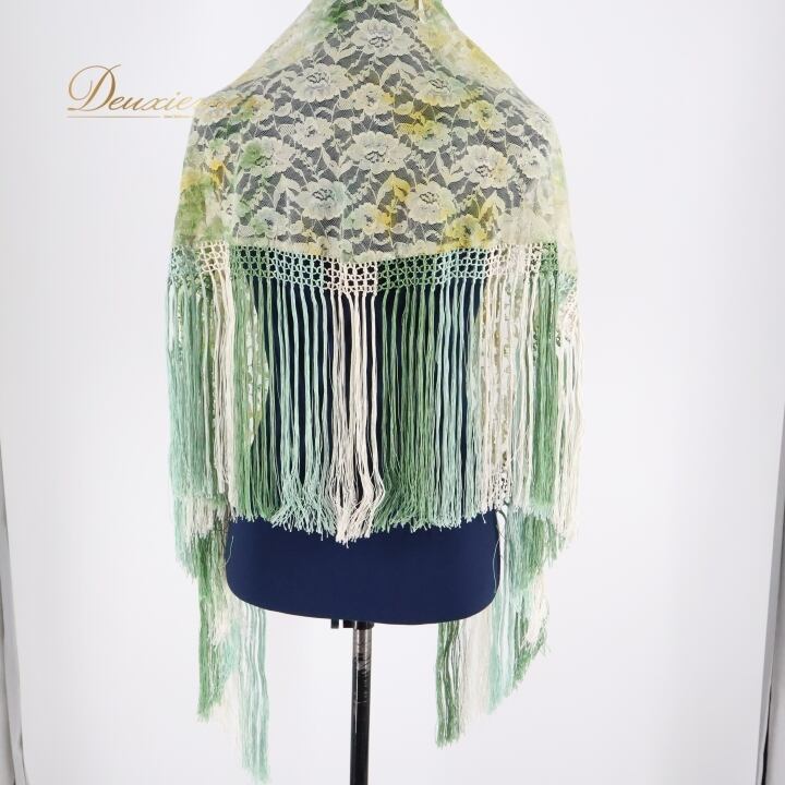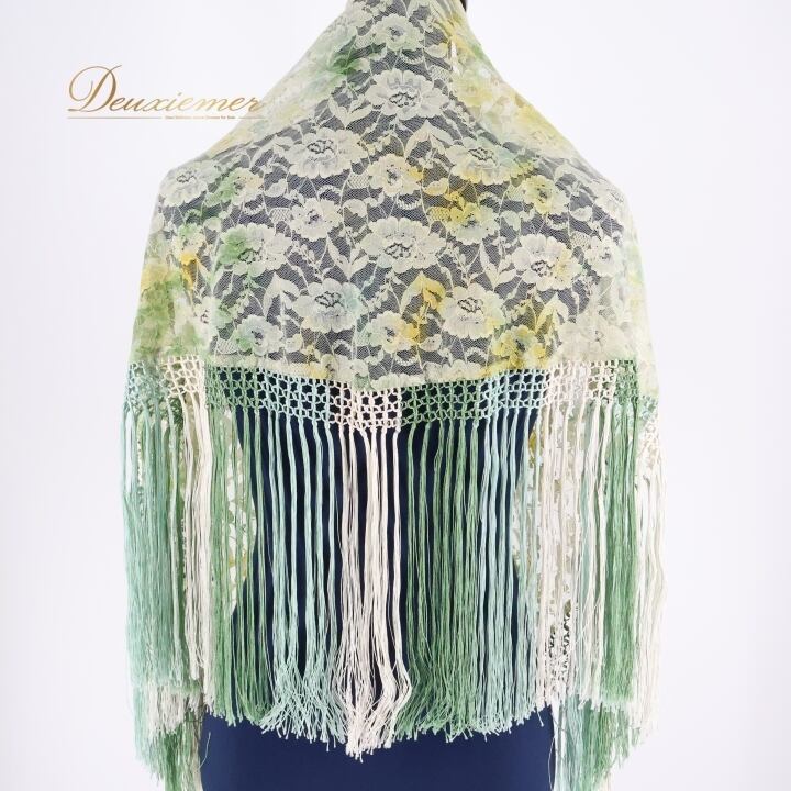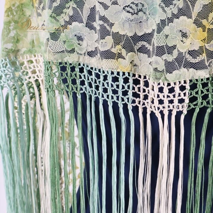 フラメンコ 衣装 シージョ ピキージョ 小物 グリーン系 黄緑 緑 イエロー系 黄色 花柄 レース アクセサリー トライアングル 三角形 フレコ ダンス イベント アイテム コスチューム ステージ衣装 かわいい おしゃれ 透け感 花模様 パーティー
