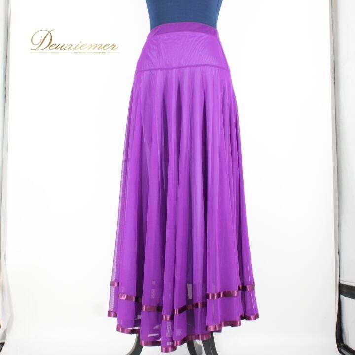 社交ダンス 衣装 スタンダード スカート レッスンウェア 女性用 レディース オールシーズン 紫 パープル系 レース 無地 シンプル 透け感 練習着 スカート丈約94cm ウエスト約33cm~ ゴム仕様 伸縮性あり ダンス衣装 舞台映え 練習用 薄手 軽量 おしゃれ フレア ストレッチ かわいい 上品