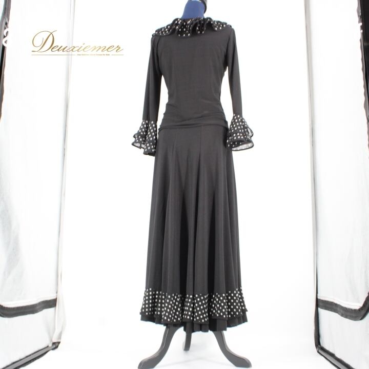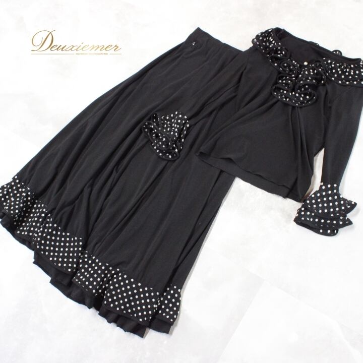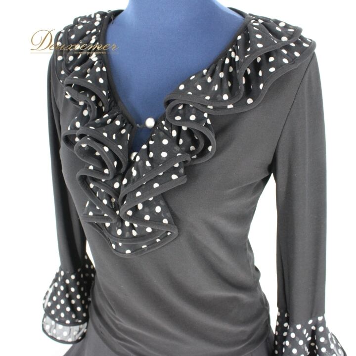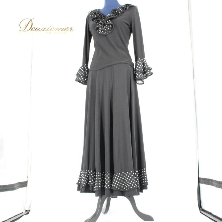 #社交ダンス #ダンス衣装 #ドット柄 #セットアップ #ブラックホワイト #レトロファッション #伸縮性 #ウエストゴム #ポリエステル #トルソー #ファッション #ダンススタイル #カジュアル #キュート #パーティー衣装 #女性用ファッション #オシャレ #ダンスイベント #衣装セット #ENUTSU