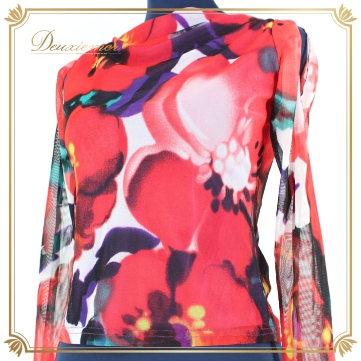 #社交ダンス #ダンス衣装 #社交ダンストップス #レッド #マルチカラー #トップス #女性用 #ダンスファッション #ストレッチ素材 #ポリエステル #ファッション #トルソー #伸縮性 #フィット感 #おしゃれ #ダンススタイル #パーティー衣装 #ダンスウェア #送料無料 #ENUTSU