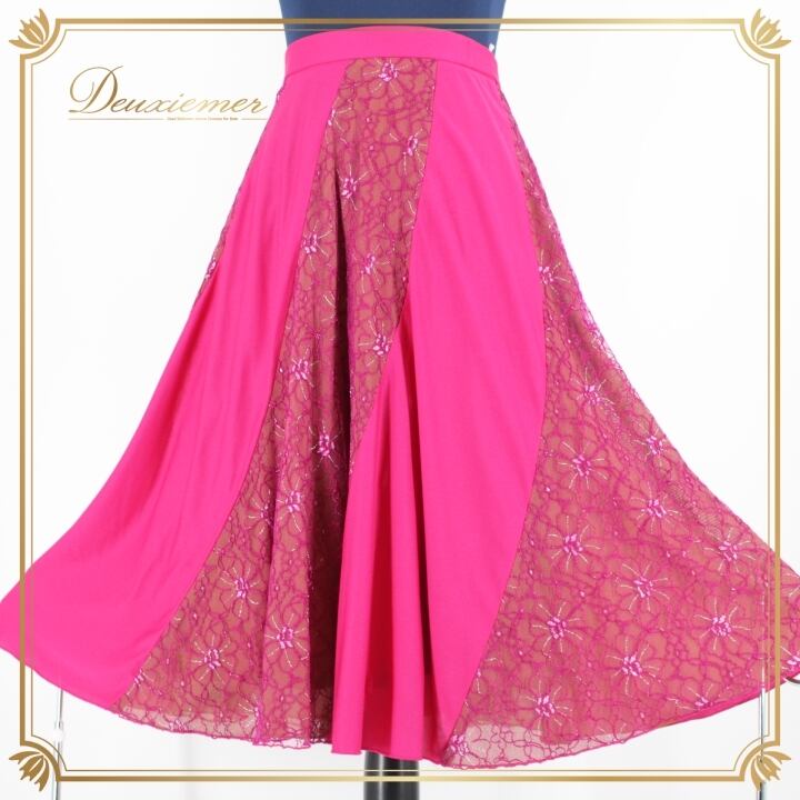 #社交ダンス #ダンス衣装 #スカート #ファッション #日本製 #マゼンダパープル #花柄 #レース #女性用 #トルソー #フェミニン #伸縮性 #ダンススタイル #ダンスプレイヤー #衣装コーデ #特別な日 #優雅な動き #パフォーマンス #ダンスライフ #ENUTSU