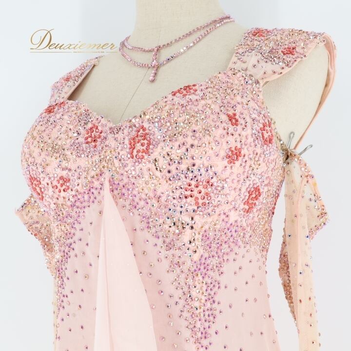 社交ダンス 衣装 チャコット Chacott スタンダード ドレス スタンダードドレス フロート レース デモ 競技 ダンス パーティ 綺麗 かわいい 明るい 日本製 ピンク系 上品 ドレス 女性らしい デザイン スカート エレガント 発表会 フォーマル おしゃれ コスチューム 競技用