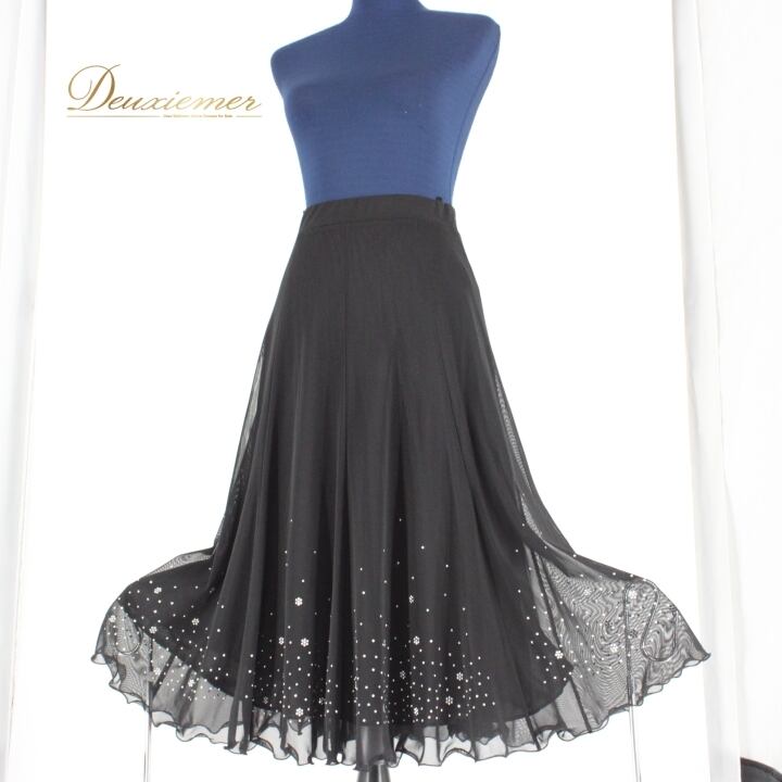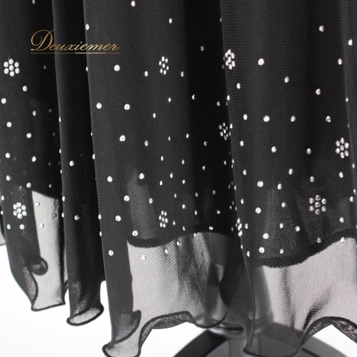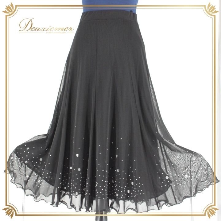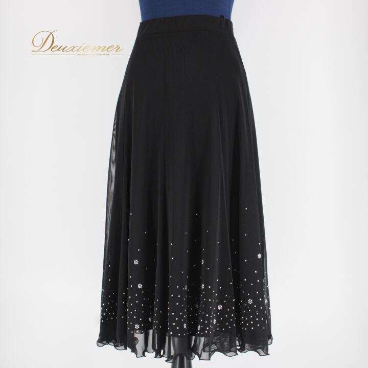 #社交ダンス #ダンス衣装 #スカート #モノトーン #ラインストーン #ウエストゴム #伸縮性 #ポリエステル #ダンススタイル #女性用トルソー #ファッション #ダンス #おしゃれ #スポーツファッション #ダンスコーデ #ダンスレッスン #パフォーマンス #特別な日の衣装 #演出 #ENUTSU