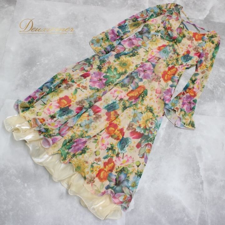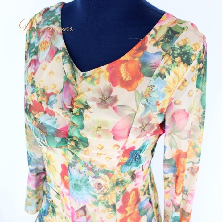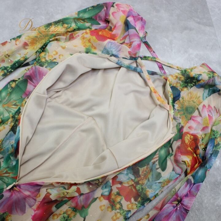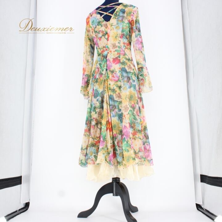 #社交ダンス #ダンスドレス #衣装 #花柄 #イエロー #グリーン #ファスナー #伸縮性 #ポリエステル #ポリウレタン #おしゃれ #女性用 #トルソー #ダンススタイル #ダンスファッション #パーティードレス #舞台衣装 #イベント衣装 #フォーマル #ダンス衣装 #ENUTSU