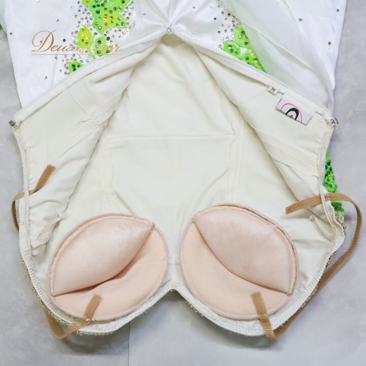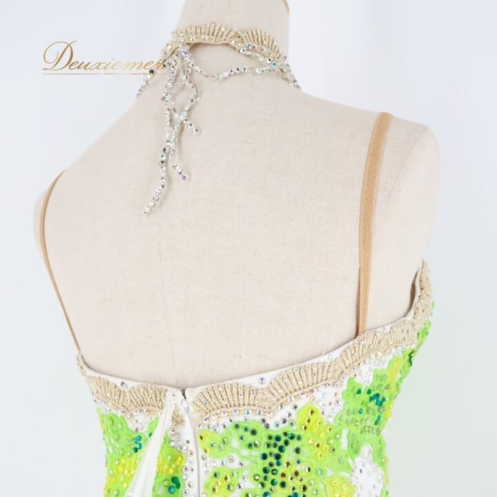 #社交ダンス #ダンス衣装 #ワンピース #ダンスドレス #女性用トルソー #美しいデザイン #色合い #上品 #ファッション #ダンスファッション #Mサイズ #背面ファスナー #ストレッチ #胸パッド #ダンススタイル #レオタード #グリーン #ホワイト #ビビッドカラー #ENUTSU