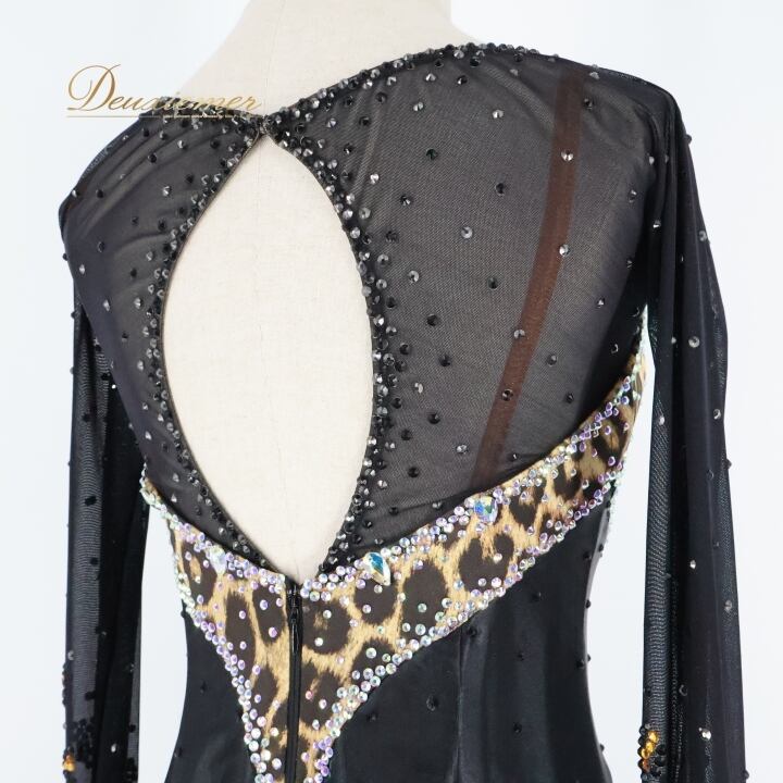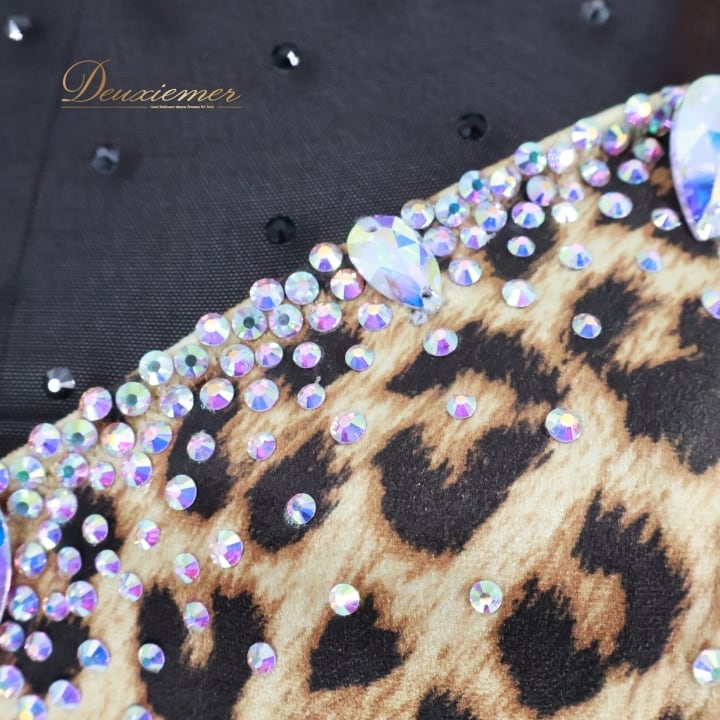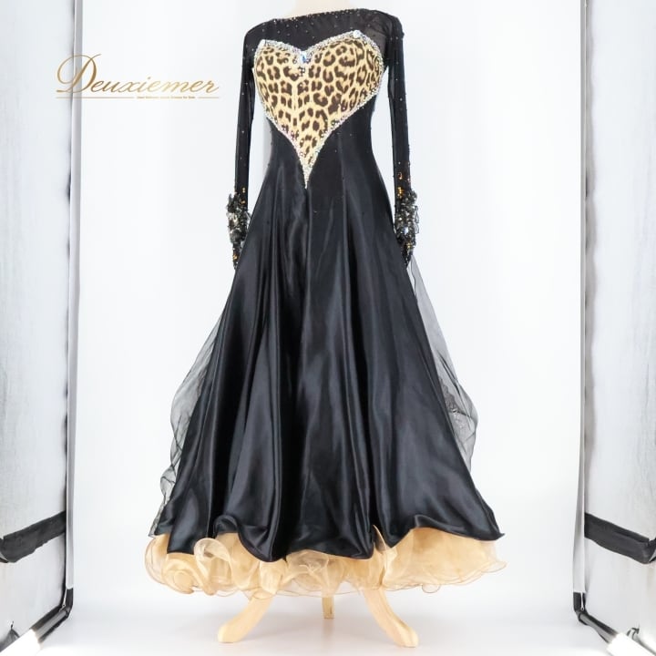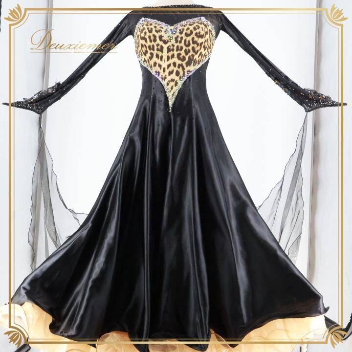 社交ダンス 衣装 チャコット Chacott スタンダードドレス スタンダード ドレス ワンピース 黒 デモ 競技 パーティ 発表会 ヒョウ柄 フリル レース フロート ブラック系 ベージュ系 光沢 スカート 大人用 フォーマル シンプル かわいい おしゃれ ダンスパーティ レディース キュート エレガント