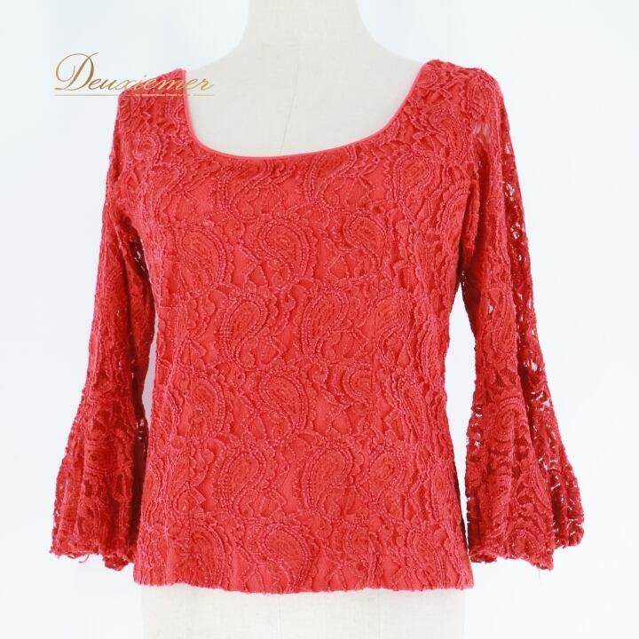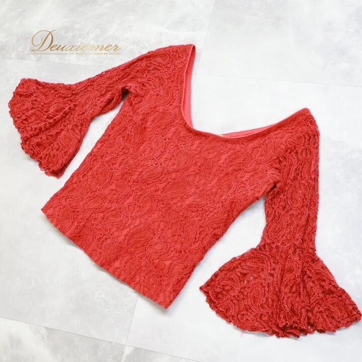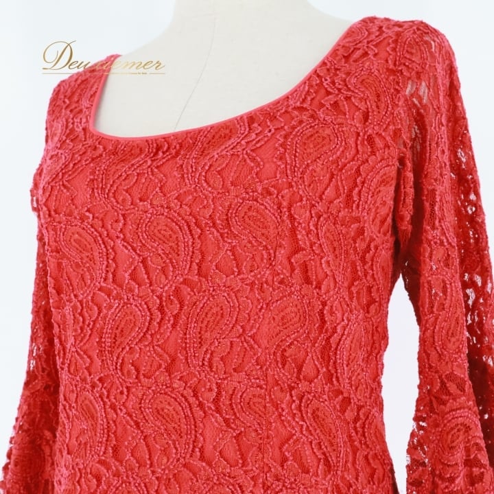 フラメンコ 衣装 トップス ブラウス 赤 レース ドセデルフラメンコ docedelflamenco レッド系 ダンス パーティ 発表会 フラメンコ衣装 トップスブラウス おしゃれ レースデザイン パーティー用 赤色 Mサイズ 発表会用 上品