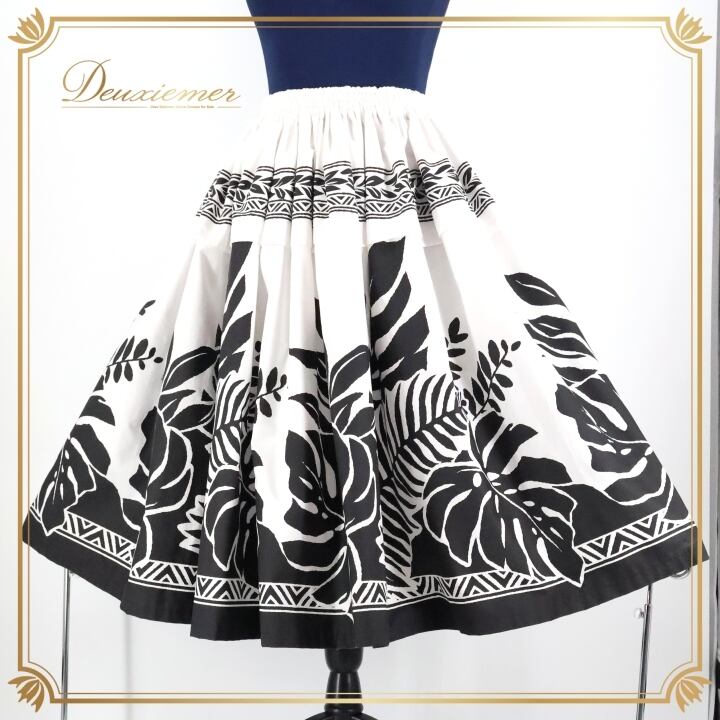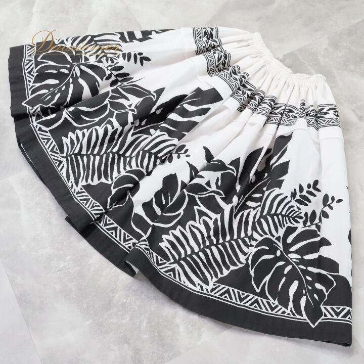 フラダンス 衣装 パウスカート ホワイト系 アロハスタンダード 日本製 ハワイアンプリント アロハ シングル モノトーン 植物柄 レッスン 練習 かわいい 大人っぽい 上品 ALOHA STANDARDS ブラック系 白 黒 フラダンス衣装 おしゃれ ハワイアンファッション 軽量 エレガント