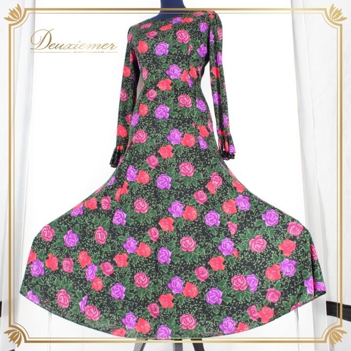 社交ダンス 衣装 スタンダード ドレス ワンピース レッスンウェア パーティ衣装 女性用 オールシーズン 花柄 黒 赤 紫 緑 ブラック系 レッド系 パープル系 華やかデザイン 伸縮性 おしゃれ ダンスパーティ 講師衣装 フェスティバル ブラックベース floral ヴィンテージ シック フレア シルエット 着やすい トレンド