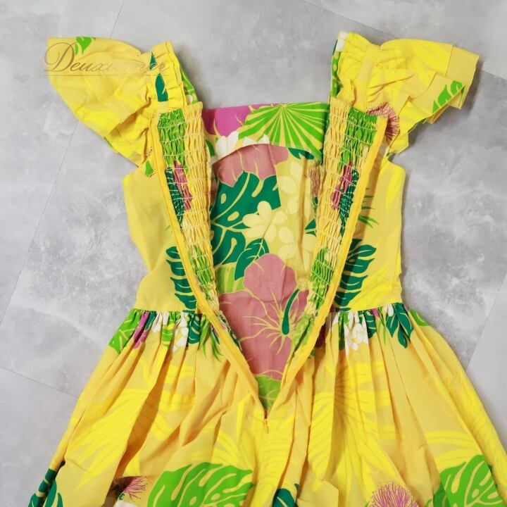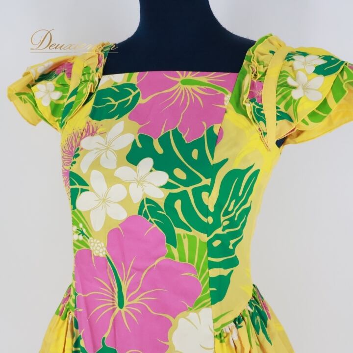 フラダンス 衣装 ワンピース ドレス イエロー系 マーメイドライン エムエムジェイ 日本製 ハイビスカス柄 ハワイアンプリント アロハ シングル かわいい 華やか 鮮やか カラフル MermaidLine MMJ グリーン系 ピンク系 ホワイト系 黄 緑 黄緑 白 フレア ドレスアップ おしゃれ 大人 レディース トロピカル ハワイ フラスタイル