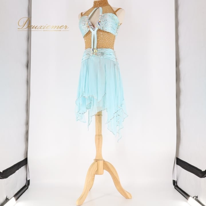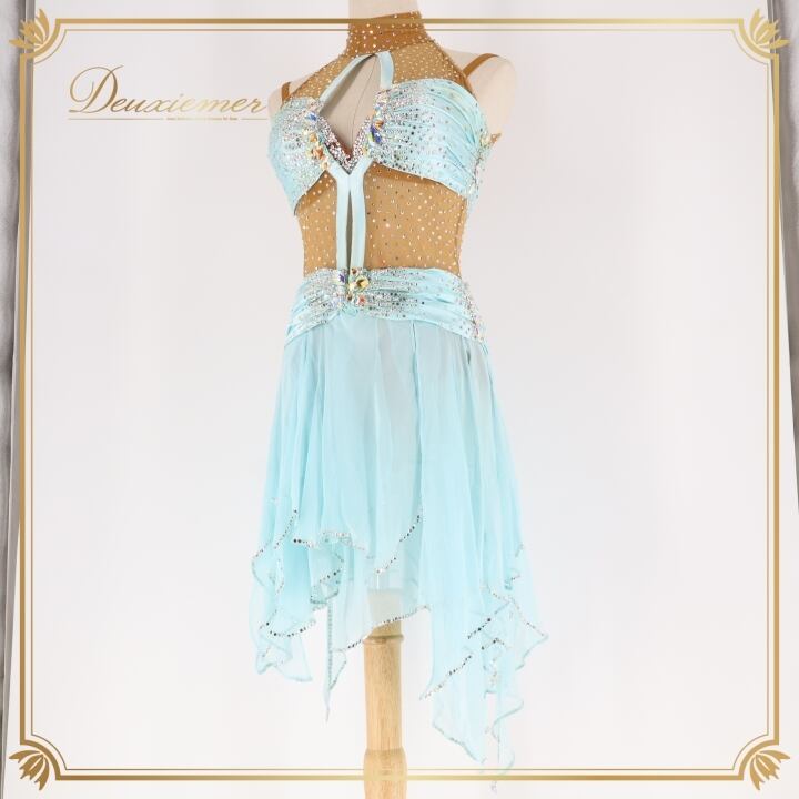 #社交ダンス #ラテンドレス #ダンス衣装 #ワンピース #日本製 #gentil #水色 #かわいい #おしゃれ #ダンスファッション #女性用トルソー #スカート #揺れるスカート #ファッション #ダンス #ダンススタイル #サイズM #元気 #特別な日 #ENUTSU
