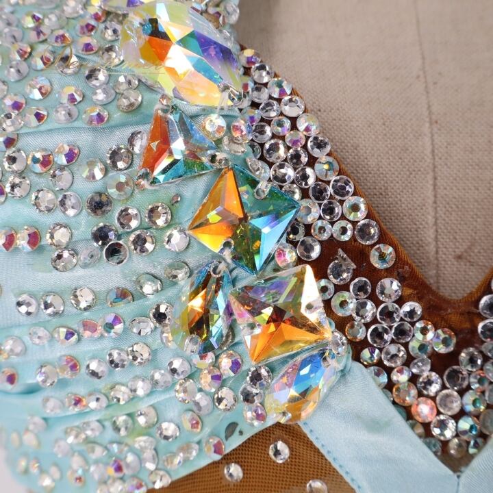 社交ダンス 衣装 ジャンティ gentil ラテン ドレス ワンピース 水色 デモ 競技 ダンス パーティ 発表会 ブルー系 レース 日本製 ラテンダンス おしゃれ 衣装 女性用 スカート 大人用 ダンス衣装 競技会 フォーマル パステルカラー かわいいデザイン