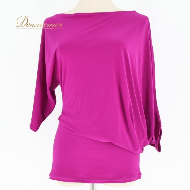 社交ダンス 衣装 トップス パープル系 ジャンティ gentil 紫 無地 シンプル レッスン 練習 鮮やか 上品 変形 特徴的 ストレッチ 伸縮 華やか 柔らかい生地 ダンス衣装 ブラウス