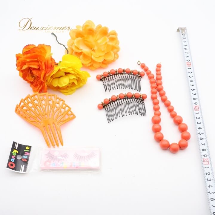 #フラメンコ #小物 #小道具 #アバニコ #扇子 #ペイネタ #フローレス #花 #ネックレス #つけまつ毛 #アクセサリー #ダンス #舞台 #発表会 #イベント #まとめ売り #オレンジ #セット #フラメンコアクセサリー #ENUTSU