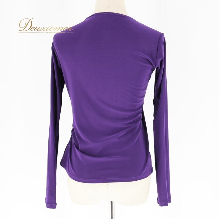社交ダンス 衣装 トップス パープル系 ジャンティ gentil ブラウス 紫 無地 シンプル 長袖 レッスン 練習 鮮やか 日本製 ストレッチ 伸縮 絞り 柔らかい生地 上品 かわいい ダンス衣装