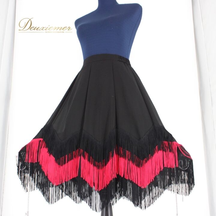 #社交ダンス #ダンス衣装 #スカート #ブラックレッド #フリンジ #ファスナー #女子ダンス #ダンスファッション #ダンススタイル #ダンスコスチューム #ウェア #パーティー #ダンスイベント #カスタムフィット #ファッション #伸縮性 #トルソー #おしゃれ #ダンス用品 #ENUTSU