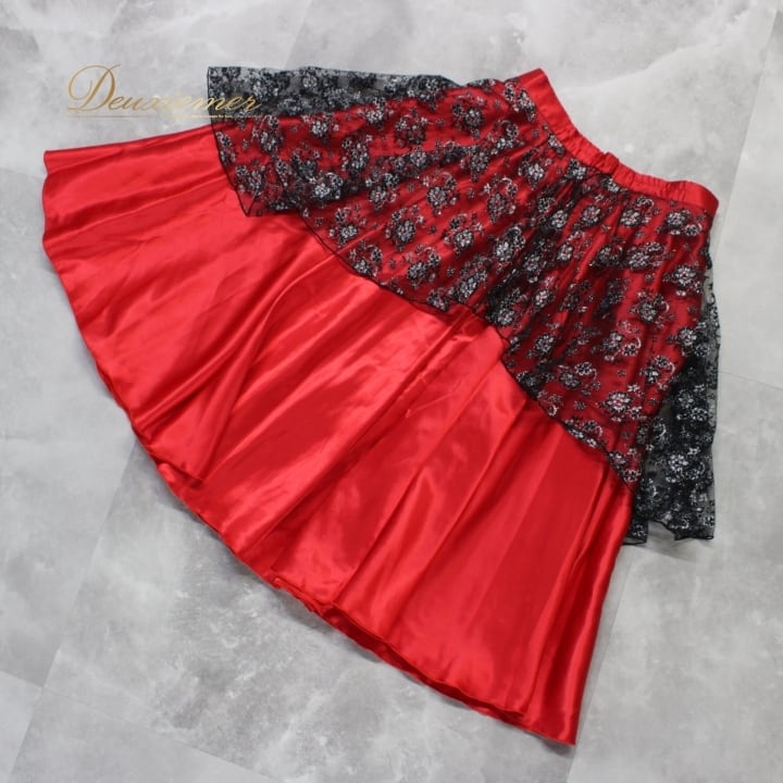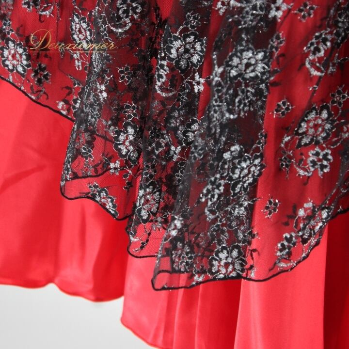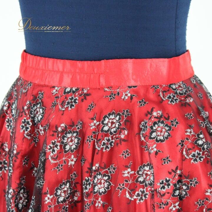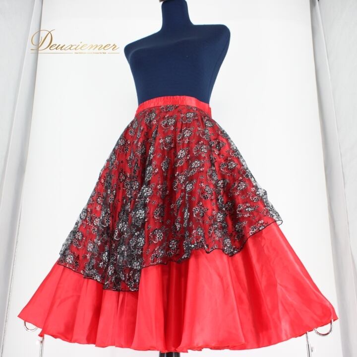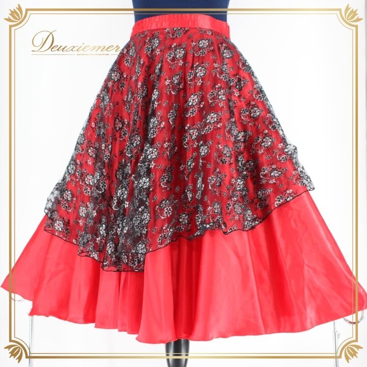 #社交ダンス #ダンス衣装 #スカート #ブラックレッドシルバー #花柄レース #日本製 #ファスナー仕様 #伸縮性 #トルソー #ダンスファッション #女性用衣装 #トレーニング #ステージ衣装 #社交ダンス服 #ファッション #ダンススタイル #エレガント #シック #ポリエステル #ENUTSU