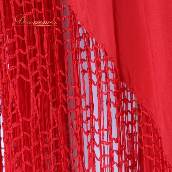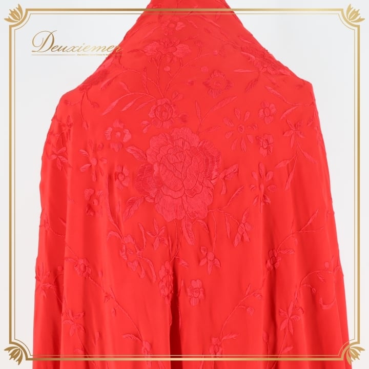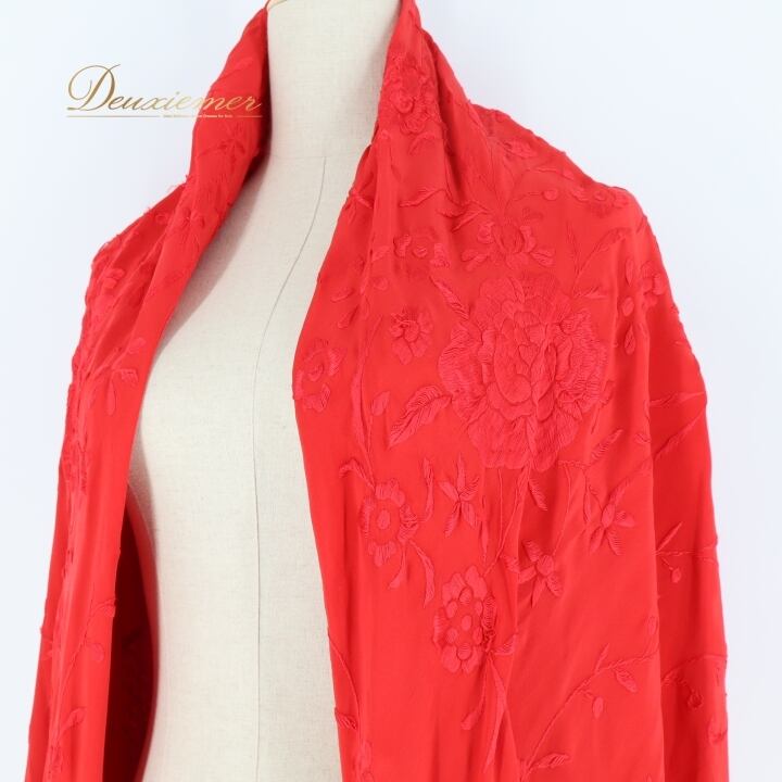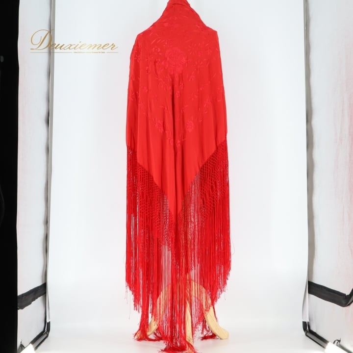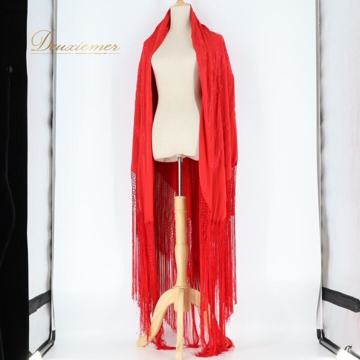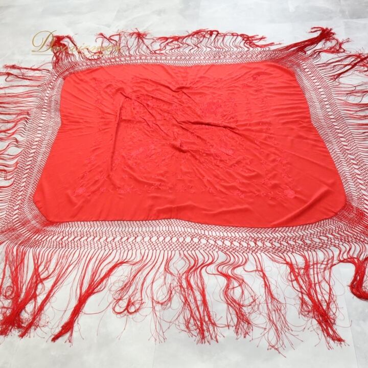 フラメンコ 衣装 マントン シージョ 赤 フレコ 刺繍 フリンジ スクエア レッド系 ダンス パーティ 発表会 舞台 花柄 マントン シージョ コスチューム おしゃれ フォーマル 可愛い フラメンコダンス フリンジ付き