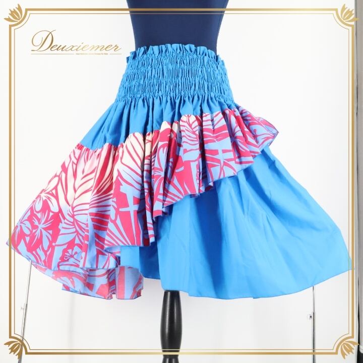 フラダンス 衣装 パウスカート エムエムジェイ MMJ ブルー系 日本製 ピンク系 ホワイト系 ダブル アシンメトリー フラ ダンス 可愛い 花柄 華やか 鮮やか 青 ハワイアン アロハ ハワイアンプリント ダンス衣装 レディース