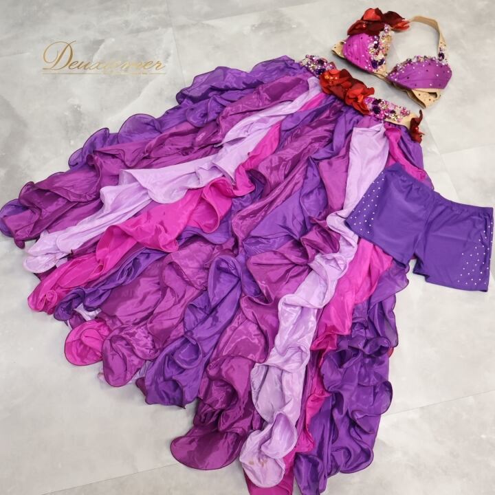 #ベリーダンス #オリエンタル衣装 #ダンス衣装 #コスチューム #アラビアン #紫色 #ラインストーン #フリル #華やか #スリットスカート #ウエストゴム #ペチパンツ #ダンスパフォーマンス #イベント衣装 #祭りコスチューム #女子会 #パーティー #衣装セット #エスニックファッション #ENUTSU