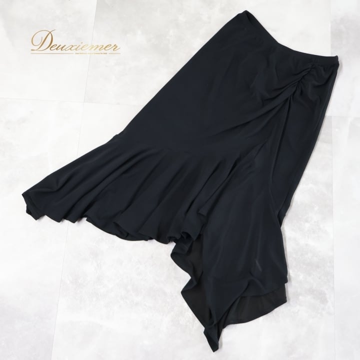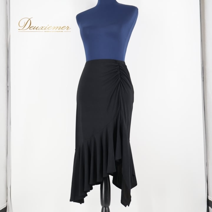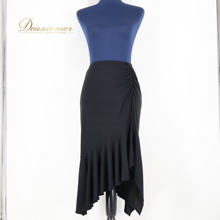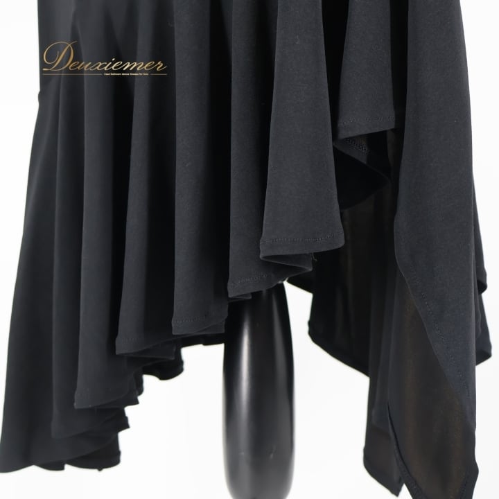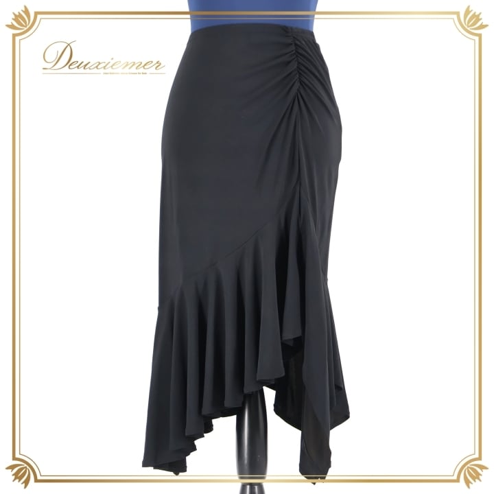 社交ダンス 衣装 スカート ブラック系 チャコット Chacott 黒 レッスン 練習 アシンメトリー 無地 シンプル ラテン ストレッチ 伸縮 オールブラック 絞り 日本製 柔らかい生地 ダンス衣装