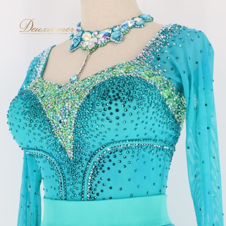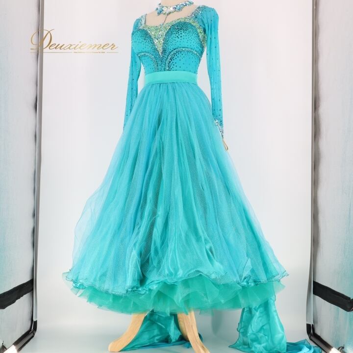 社交ダンス 衣装 凛舞 リンブ チャコット Chacott クリスアン chrisanne スタンダードドレス スタンダード ドレス ワンピース フロート 緑 青 フロート 上品 デモ 競技 ダンス パーティ 発表会 ブルー系 グリーン系 イングランド製 スカート おしゃれ 高級感 競技用 ダンスウェア ダンスパフォーマンス レディース