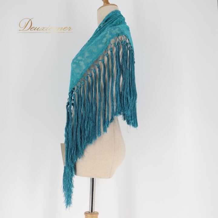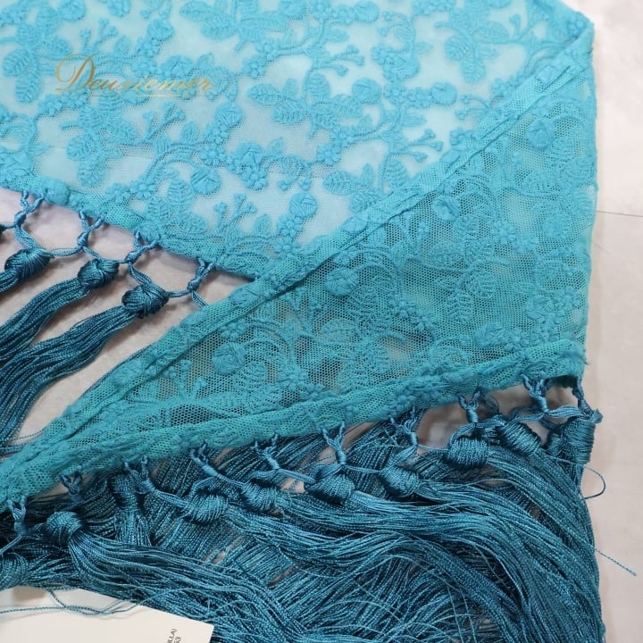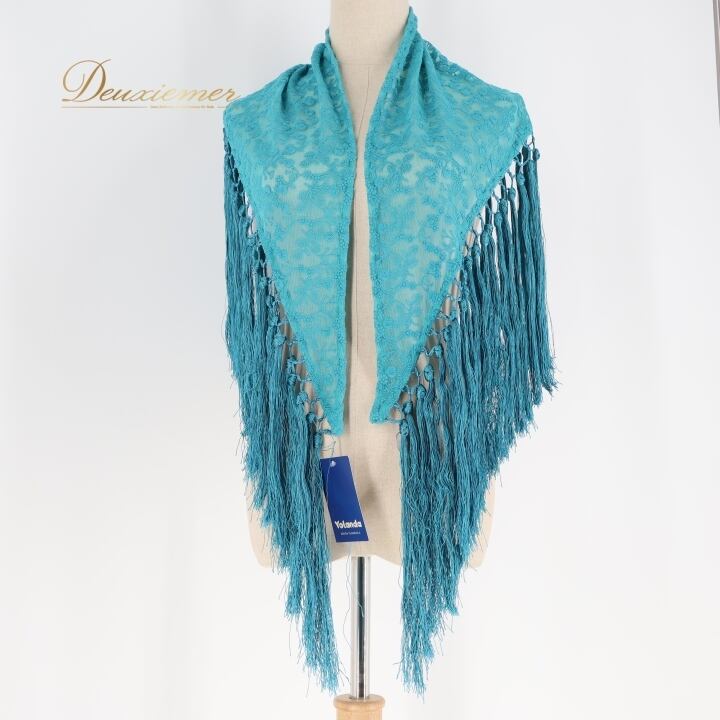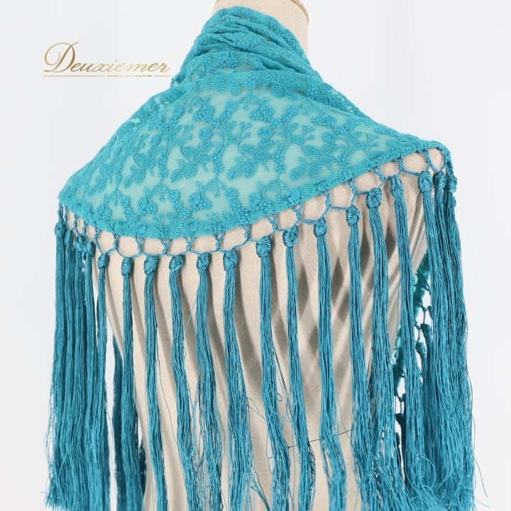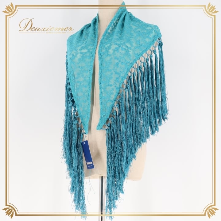 フラメンコ 衣装 シージョ トライアングル 三角形 レース フレコ Yolanda お洒落 透け感 飾り 小物 小道具 ダンス パーティ 装飾 ブルー系 グリーン系 ショール ストール ダンス衣装 おしゃれ 小道具 大人用 エレガント フリンジ 軽量